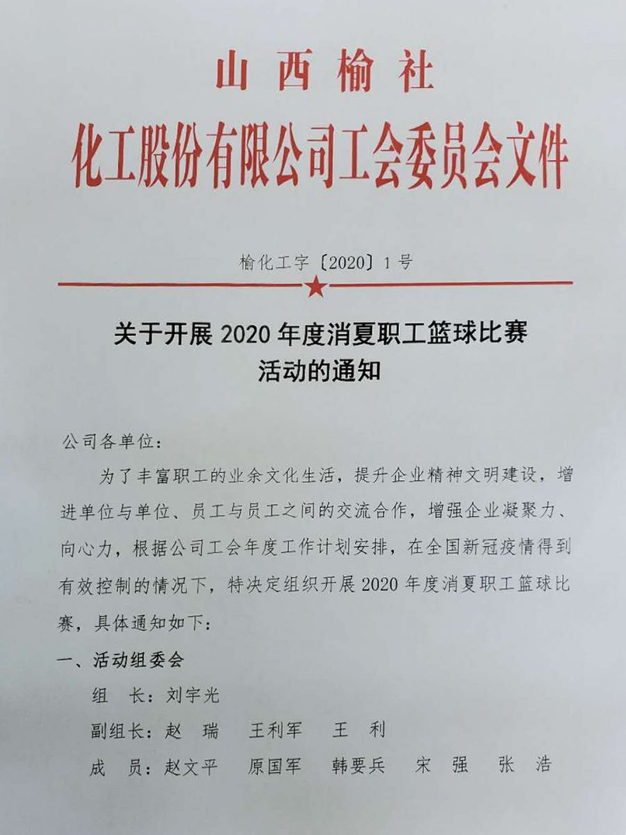 關(guān)于開展2020年度消夏職工籃球比賽活動的通知