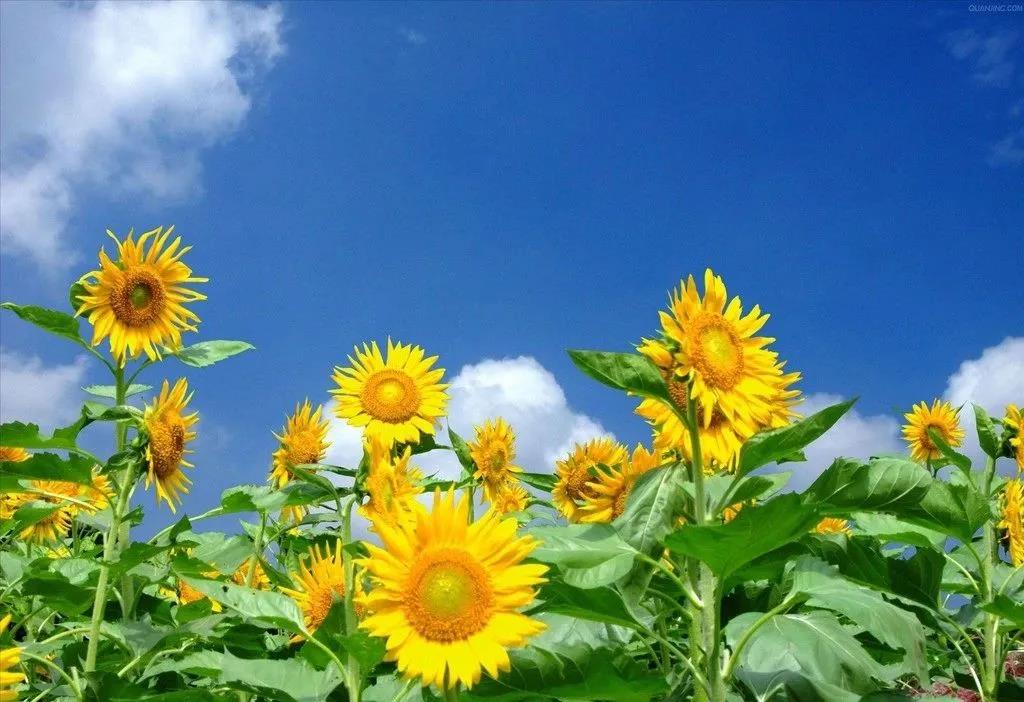 忽然,我眼前一亮,不遠(yuǎn)處竟然有一株盛開的向日葵花。 這株小小的向日葵,不過幾寸來高,它纖細(xì)的毛茸茸的莖桿上,撐開四片翠色透亮的嫩葉,頂上擎著的一朵小花正開得旺盛。宛如一株讓人心生愛憐的花兒。我一陣欣喜,不禁蹲下來凝神細(xì)看。金黃凝滑的花瓣,滾著幾滴晶瑩的露珠,如水洗過般光潔;嬌妍簇?fù)淼幕ㄈ?,纖弱柔美,亭亭玉立;涼風(fēng)拂過,花枝微顫,還能嗅到一抹淡淡的馨香。