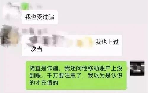 今年又遇到了一起小伙子在超市門(mén)口騙人的事件。幾個(gè)小年輕人,看著也就剛剛二十出頭,“充一百贈(zèng)五十”吆喝的很是響亮,當(dāng)時(shí)我正巧路過(guò),又正巧話(huà)費(fèi)到月底需要扣費(fèi)了,心想力度這么大?看著好多人都在充值,我也就開(kāi)始排隊(duì)等候,排隊(duì)的時(shí)候心里有些疑惑,但是看著年輕孩子們童真無(wú)邪的臉?biāo)查g放松了警惕,覺(jué)得光天化日之下,又是在超市門(mén)口,估計(jì)是自己多想了。
