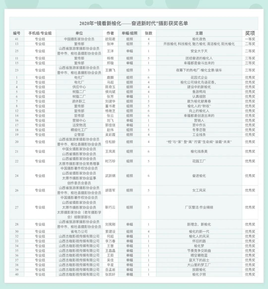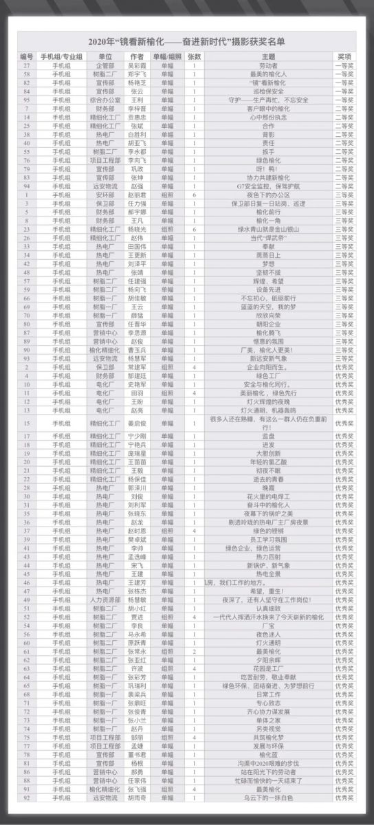 榆化公司2020年“鏡看新榆化——奮進新時代”攝影大賽評選結(jié)果公布如下: