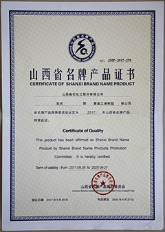 2017山西省名牌產(chǎn)品證書(shū)