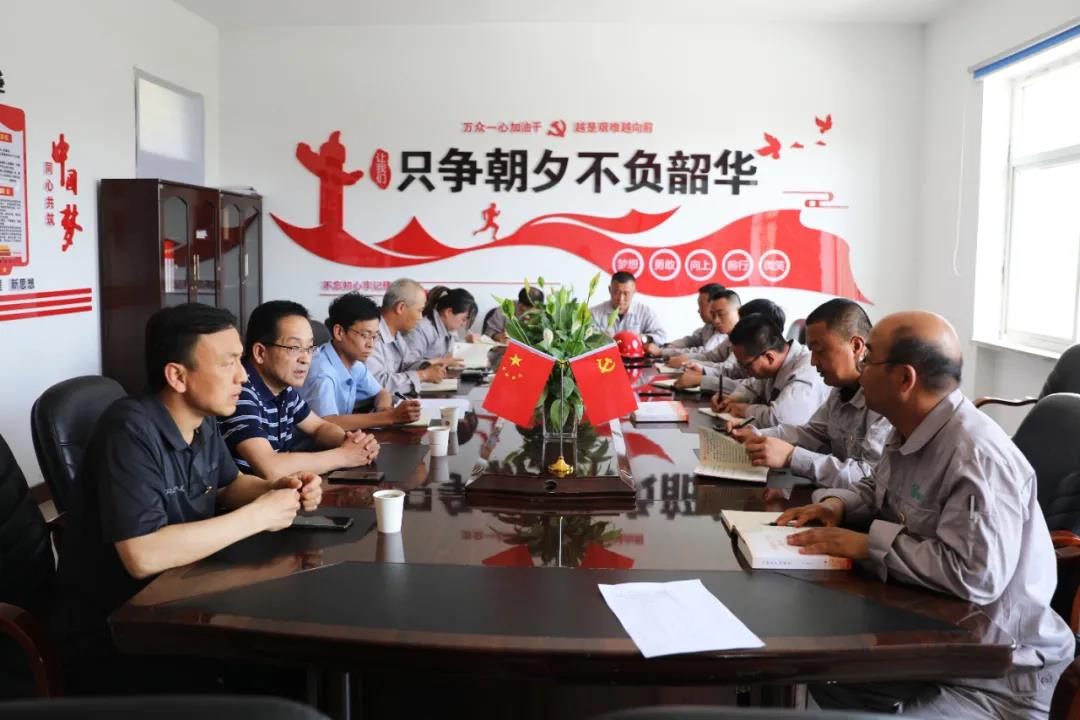 5月27日,榆社縣國有資產經營公司董事長王建國、總經理王俊杰一行深入我公司一廠支部組織開展黨史學習。公司一廠支部書記原國軍,支部黨員參加學習。