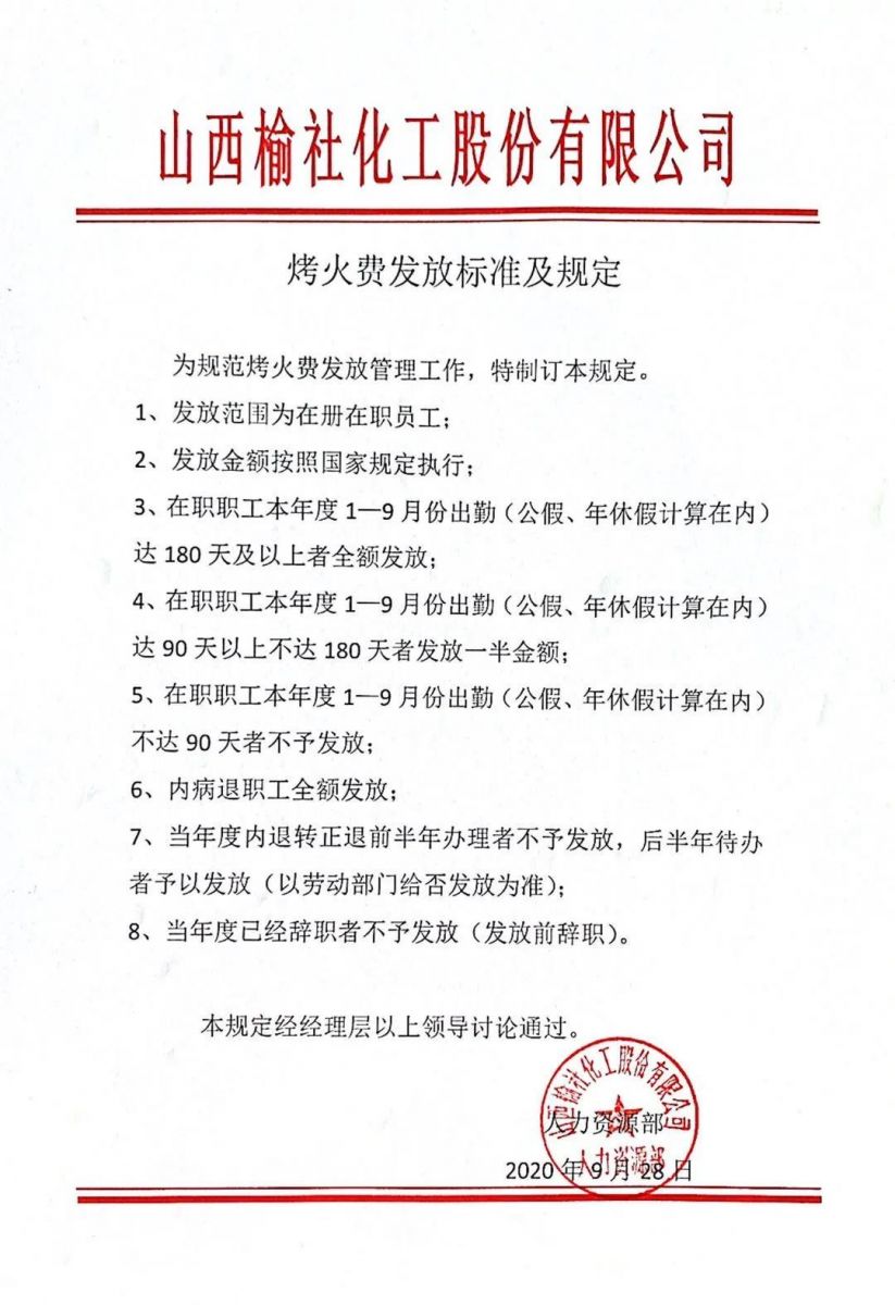 本次烤火費(fèi)發(fā)放涵蓋總公司、遠(yuǎn)安物流、榆化精細(xì)化全體在冊(cè)在職員工共計(jì)2811人,按照國家3360元的標(biāo)準(zhǔn)執(zhí)行,共計(jì)發(fā)放總金額939.96萬元。