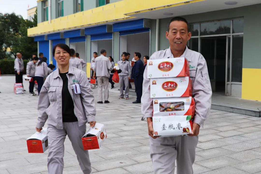 9月25日,月餅的香甜還留在唇齒間,公司就又為全體員工發(fā)放了太谷壺瓶脆棗。甜上加甜,甜進(jìn)心間,讓每一位員工再一次感受到作為一名榆化人的幸福與自豪。榆化給員工發(fā)放的福利不僅在節(jié)日,更在點點滴滴的日常生活里。
