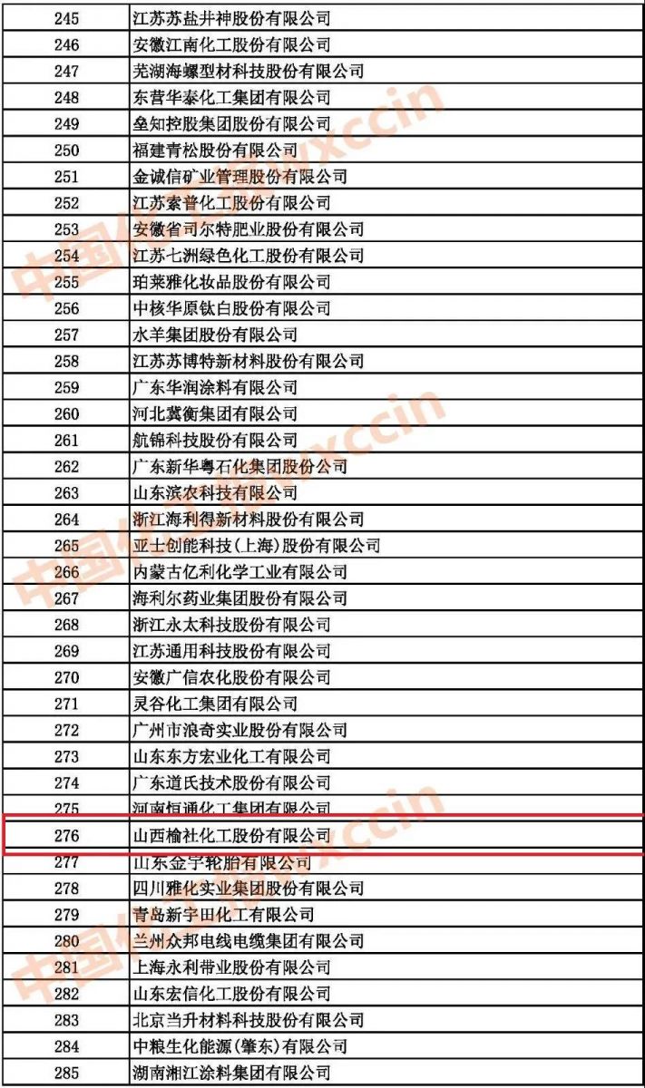 自2003年至今,公司已連續(xù)19年登上中國(guó)化工企業(yè)500強(qiáng)榜單。今年,我公司榮登2021中國(guó)石油和化工企業(yè)500強(qiáng)排行榜(綜合類(lèi)企業(yè))第276名!